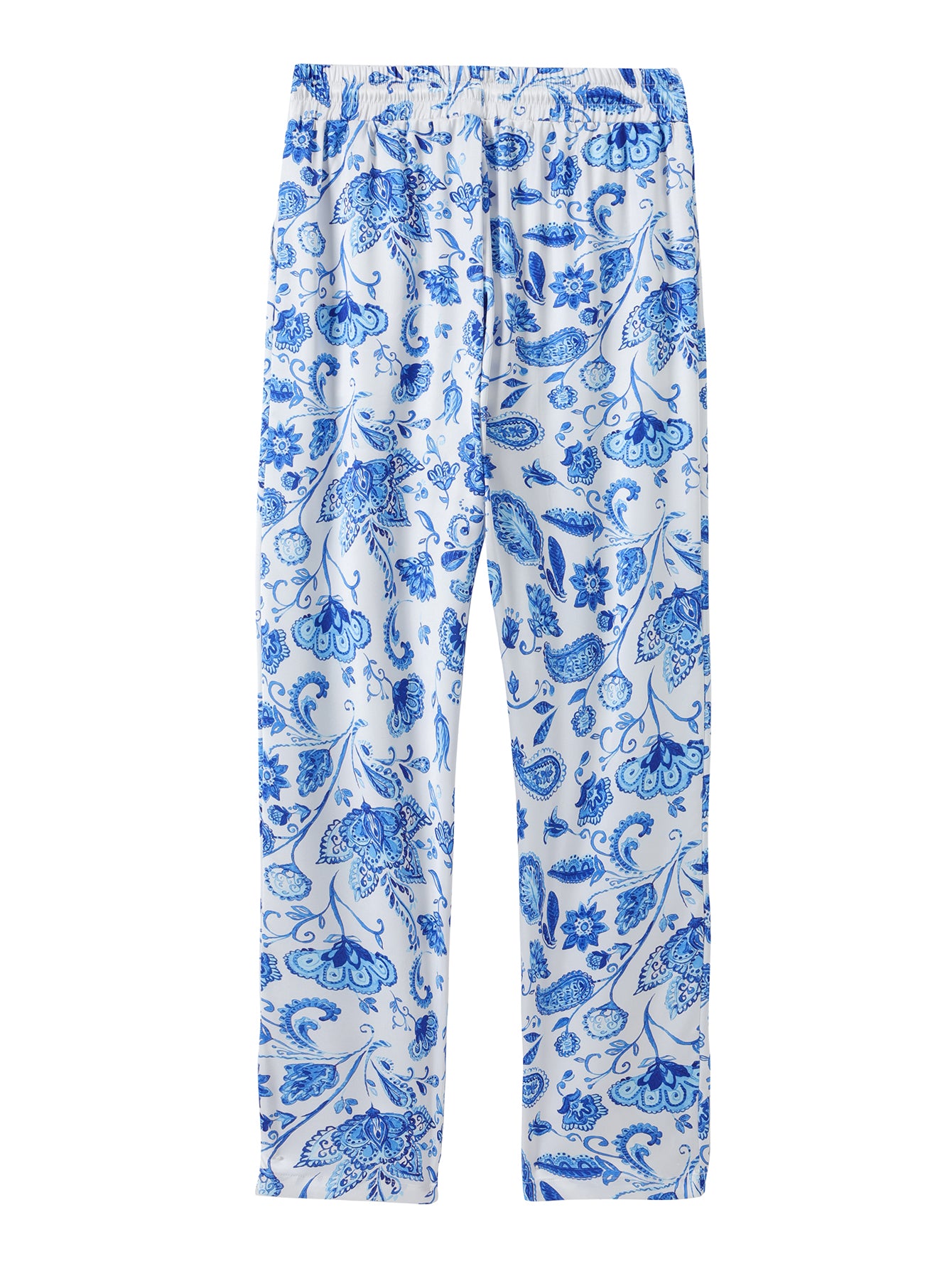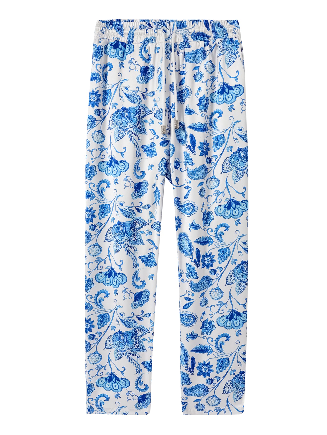 Effortlessly elevate your style with The Azul Pants. Crafted from 100% satin and featuring a stylish, relaxed fit with an adjustable waistband, these printed handmade trousers provide both comfort and functionality. Complete with side pockets and adorned with unique and original art, these pants are a must-have for any fashion-forward individual.