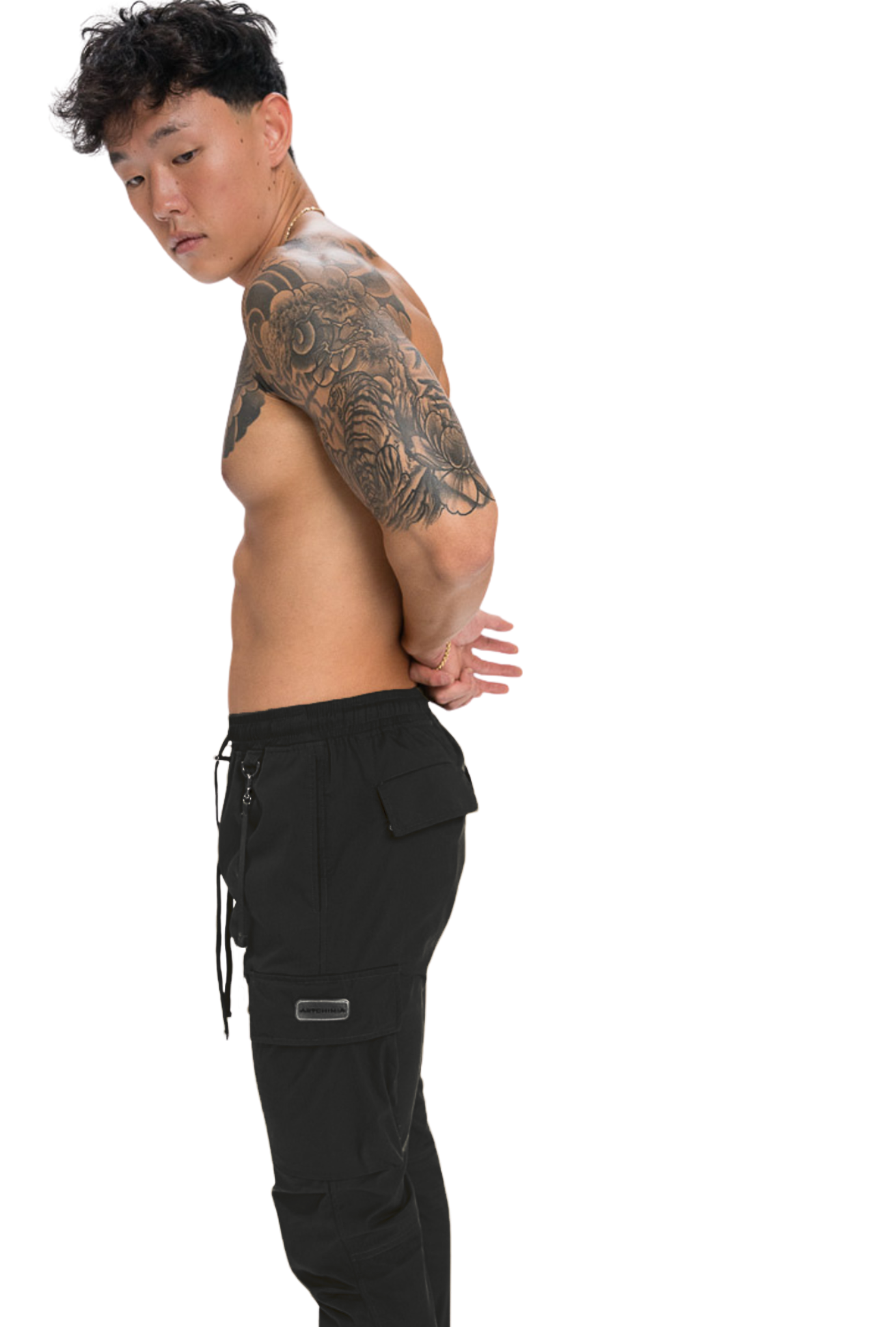 Built for motion. Designed by Artchimia. These slim-fit joggers are crafted from a premium nylon-polyester blend with 4-way stretch, delivering the perfect fusion of performance and streetwear edge. Whether you’re on the move or laying low, these joggers adapt to your every shift, with tactical details, a tailored silhouette, and uncompromising comfort.